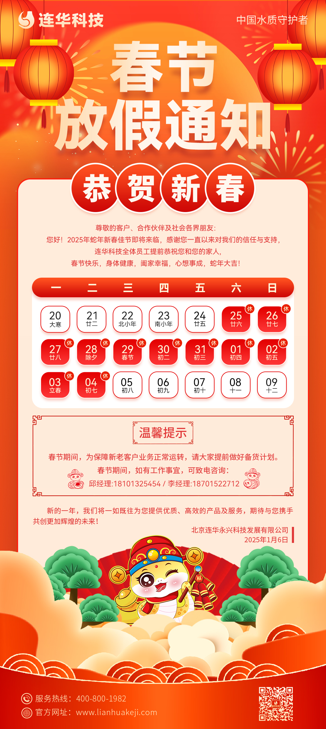 連華科技丨2025年春節放假通知