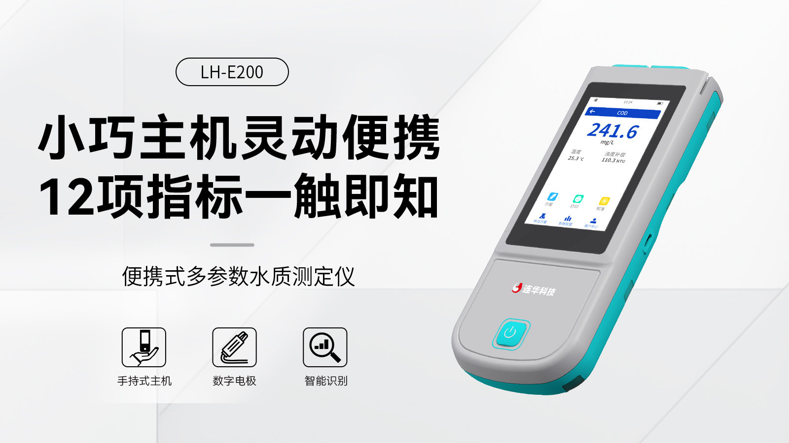 ●手持式迷你主機,支持12項水質指標電極法檢測,無需耗材快速出值;