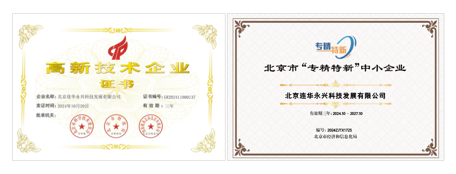 值得一提的是,連華科技再度蟬聯“北京市專精特新企業”和“北京市高新技術企業”兩項殊榮。能夠連續獲得這兩個稱號,充分反映出其具備強大的持續創新能力和良好的發展態勢,在技術研發、產品質量、市場拓展等方面均達到了行業前列水平。