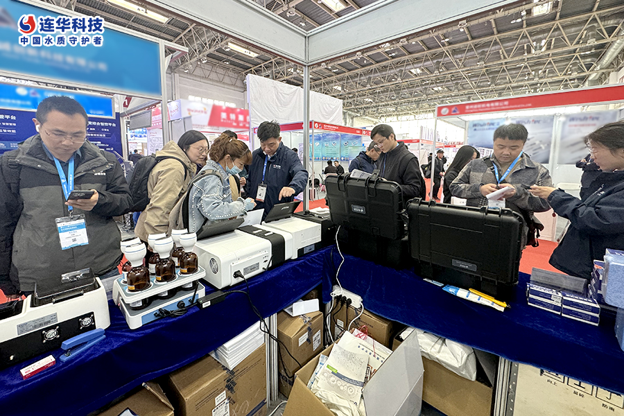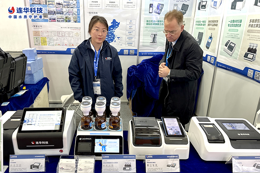在E1043展位,連華科技以簡潔大氣的設計風格和豐富多樣的產品展示,吸引了眾多參會者的目光。作為水質檢測與分析儀器領域的佼佼者,連華科技此次攜紫外可見分光光度計LH-S700、便攜式多參數水質測定儀LH-E200、紅外測油儀LH-S600、化學需氧量(COD)智能回流消解儀LH-F510等十余款旗艦產品亮相展會,全面展示了其在環境監測、水質分析等領域的深厚技術積累與創新能力。