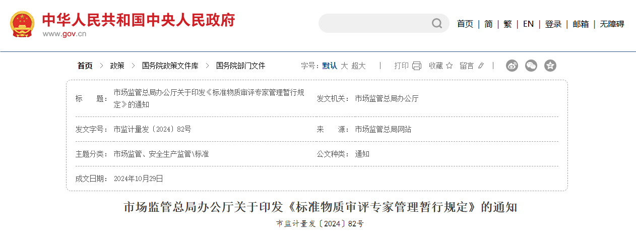 近日,市場監(jiān)管總局印發(fā)《標(biāo)準(zhǔn)物質(zhì)審評(píng)專家管理暫行規(guī)定》(以下簡稱《暫行規(guī)定》),共22條,旨在充分發(fā)揮專家在標(biāo)準(zhǔn)物質(zhì)管理中的作用,規(guī)范標(biāo)準(zhǔn)物質(zhì)技術(shù)審評(píng)專家管理,保證標(biāo)準(zhǔn)物質(zhì)定級(jí)鑒定工作的質(zhì)量和公正性。