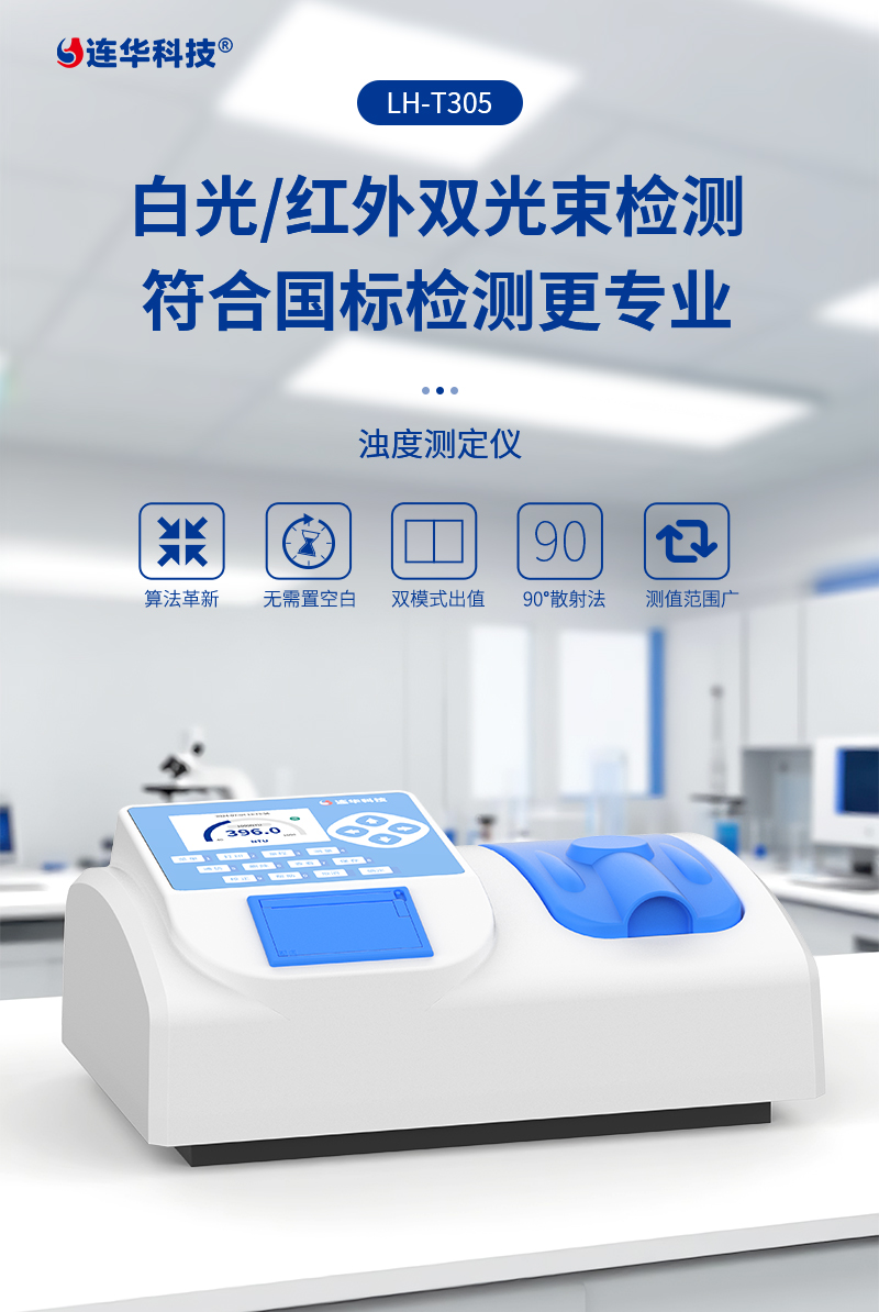 簡要描述: LH-T305濁度測定儀符合《GB/T5750.4-2023》、《ISO 7027-1:2016(E)》、《EPA 180.1(US)》相關(guān)行業(yè)標(biāo)準(zhǔn),采用90°散射法量可直接測量濁度范圍40-4000NTU的樣品濁度,能有效避免環(huán)境溫度影響,測值更加穩(wěn)定、可靠。內(nèi)置常規(guī)模式和信號平均模式,常規(guī)模式適合多數(shù)樣品,信號平均模式適合有懸浮物樣品,滿足各種場景檢測需求。
